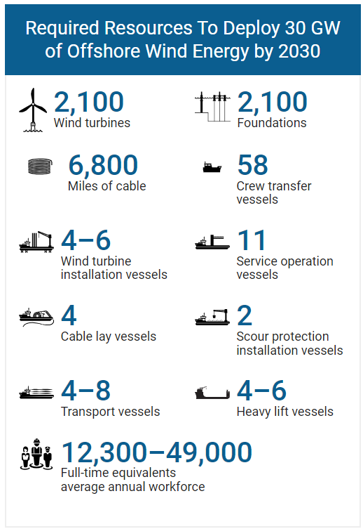 Source: DOE, Top 10 Things You Didn’t Know About Offshore Wind Energy; NREL, Supply Chain Road Map