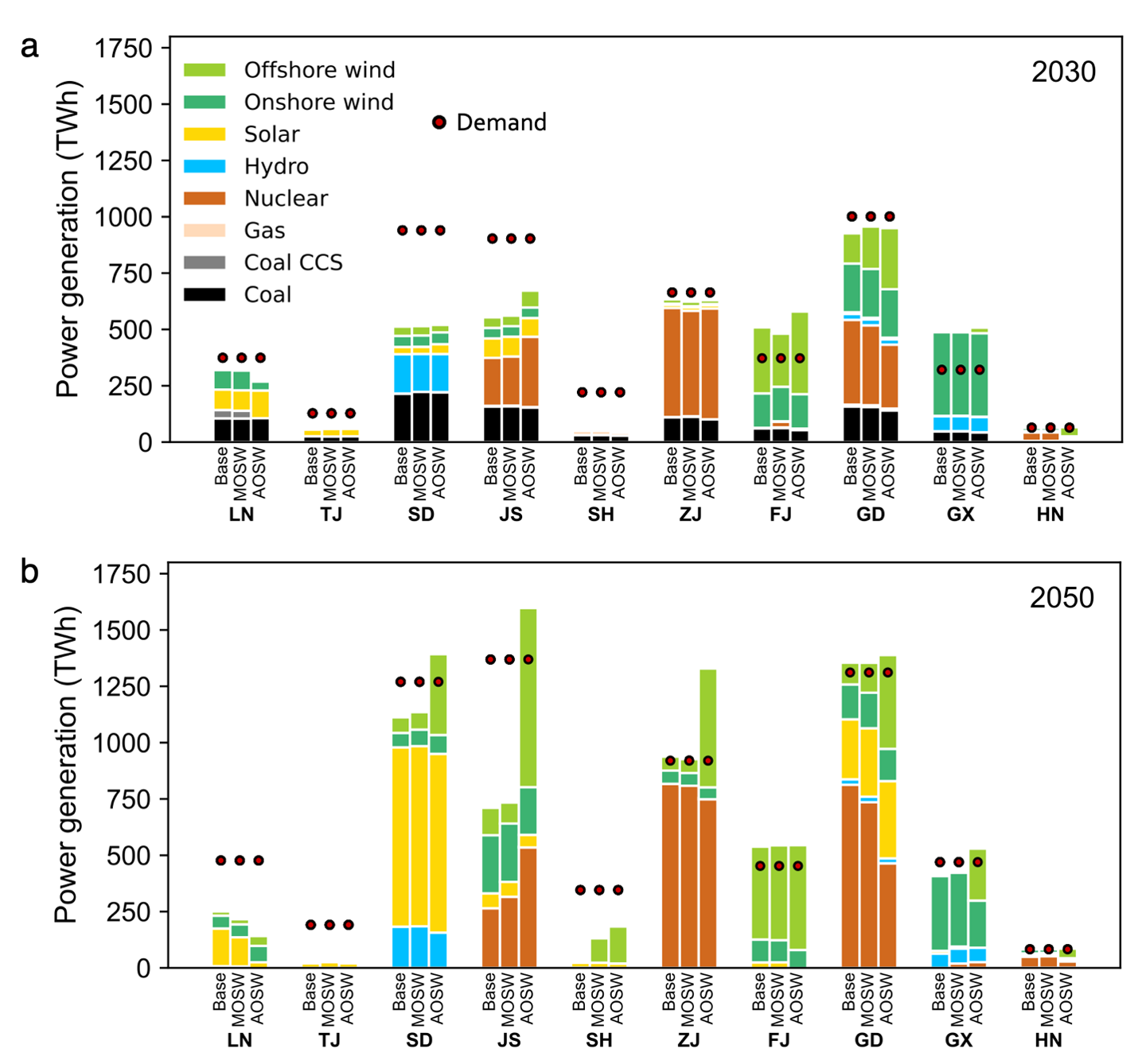 Accelerating offshore wind power deployment, a critical but underutilized resource for decarbonizing power systems, requires balancing national and local interests. Using China, the global leader in offshore wind, as a case study, here we evaluate how its deployment creates benefits, such as improved energy self-sufficiency, greater resource diversity, enhanced grid reliability, and increased local investment and employment. Our results show that offshore wind can bolster the energy self-sufficiency of coastal provinces, shifting them from net electricity importers to exporters. Furthermore, expanding offshore wind reduces the need for energy storage in a grid with high renewable penetration and drives substantial local investment and job creation. After quantifying uncertainties in policies, technology costs, and electricity demand, we find offshore wind could provide 3–18% of China’s electricity by 2050. Aligning local interests with offshore wind development can facilitate more ambitious targets and accelerate power system decarbonization with limited increases in system costs.